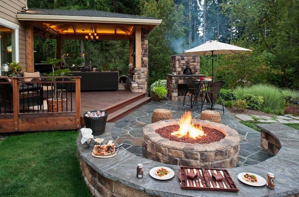 Площадка, где обустраивают печь, уличный камин, мангал, становится любимым местом для всей семьи. Здесь можно посидеть с друзьями, отдохнуть в домашнем кругу, приготовив шашлык и другую вкусную еду на открытом огне.