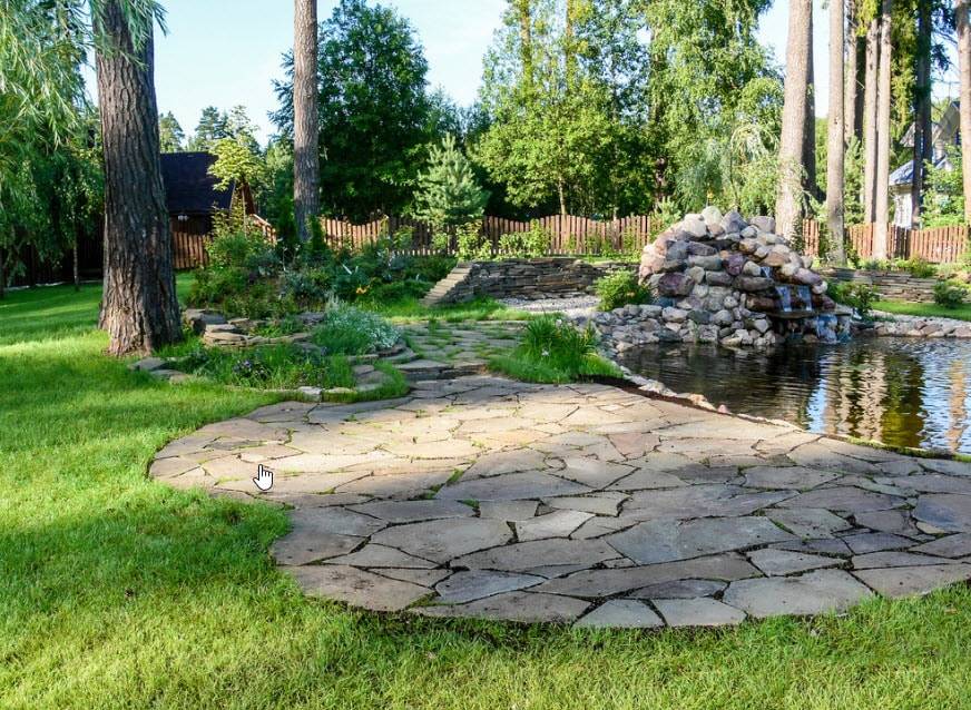 Красивый пруд во дворе, выложенный из камней