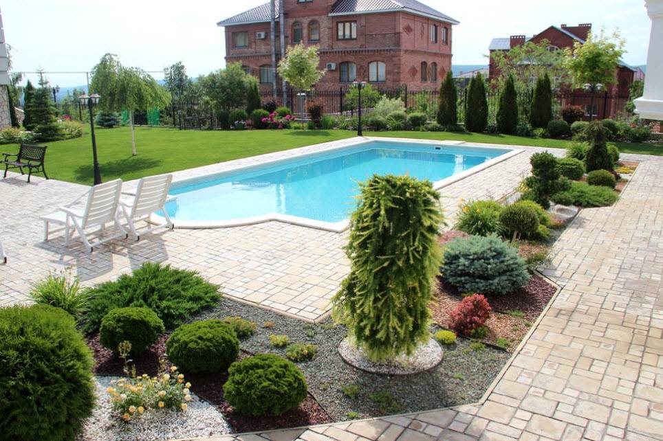 А вот бассейн на улице – настоящая роскошь. Ведь его нужно тщательно продумать и правильно построить, чтобы впоследствии можно было насаждаться прохладой воды в жаркий день.