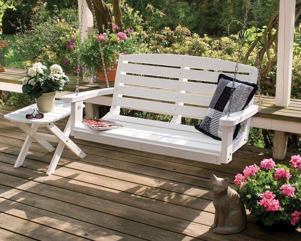 Двор обустраивают мебелью из металла, дерева, искусственного ротанга или пластмассы. Эти материалы устойчивы к непогоде и за ними легко ухаживать. Многие отдают предпочтение деревянной и кованой мебели, поскольку натуральные материалы комфортнее для человека, чем искусственные.