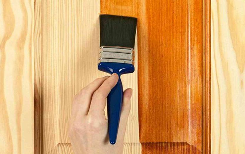 при окрашивании водными морилками некоторые мастера рекомендуют для уменьшения шероховатости поверхности перед процедурой увлажнить древесину теплой водой и дать ей высохнуть