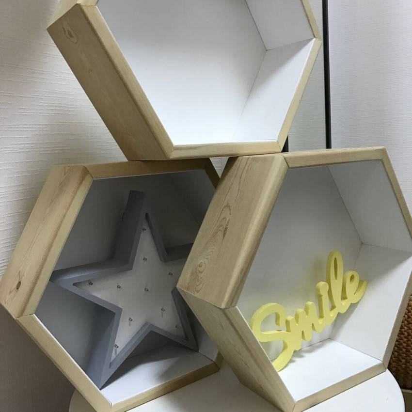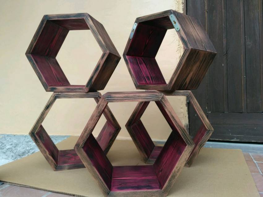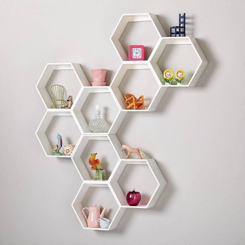 Для людей, которые мыслят творчески и хотят иметь в квартире необыкновенный дизайн, отличным дополнением станет полка подобна медовым сотам.