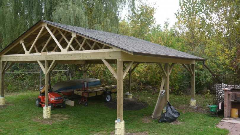 Навес для дров своими руками: фото готовой обвязки с установленными на нее ребрами жесткости
