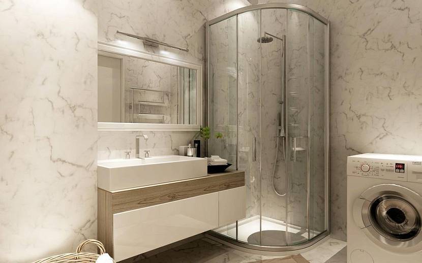 - Отделку ванной следует выполнять при помощи водонепроницаемого материала:
