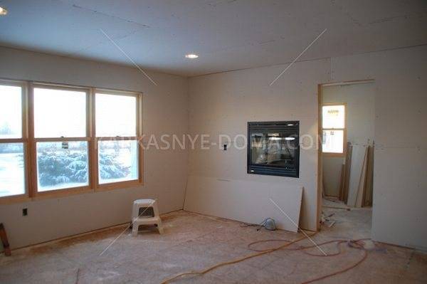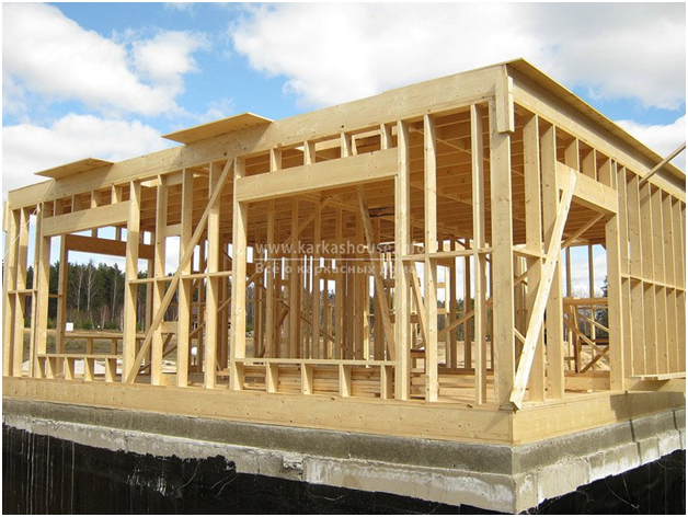 В отличие от деревянного сооружения, где усадка уже за первый год составляет 8-10%, каркасная конструкция лишена подобного недостатка. Вся причина в том, что для изготовления сборочных панелей используется только сушеная и обработанная древесина. Такая особенность очень удобна для использования в качестве отделки легких и прочных отделочных материалов. Укрыв слой утеплителя пленкой в качестве пароизолятора, можно свободно начинать монтаж листов гипсокартона, других материалов на балки перекрытия. При желании, в существующее межбалочное пространство можно спрятать электропроводку и осветительную аппаратуру.