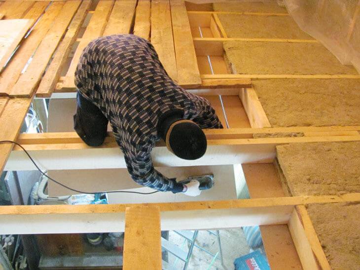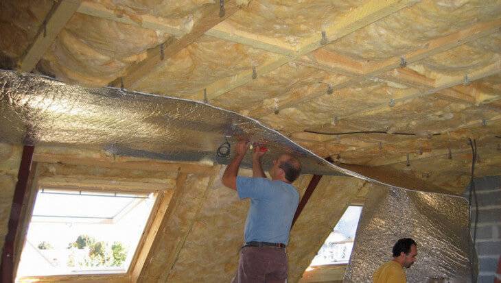Установка теплоизоляции в деревянном потолке