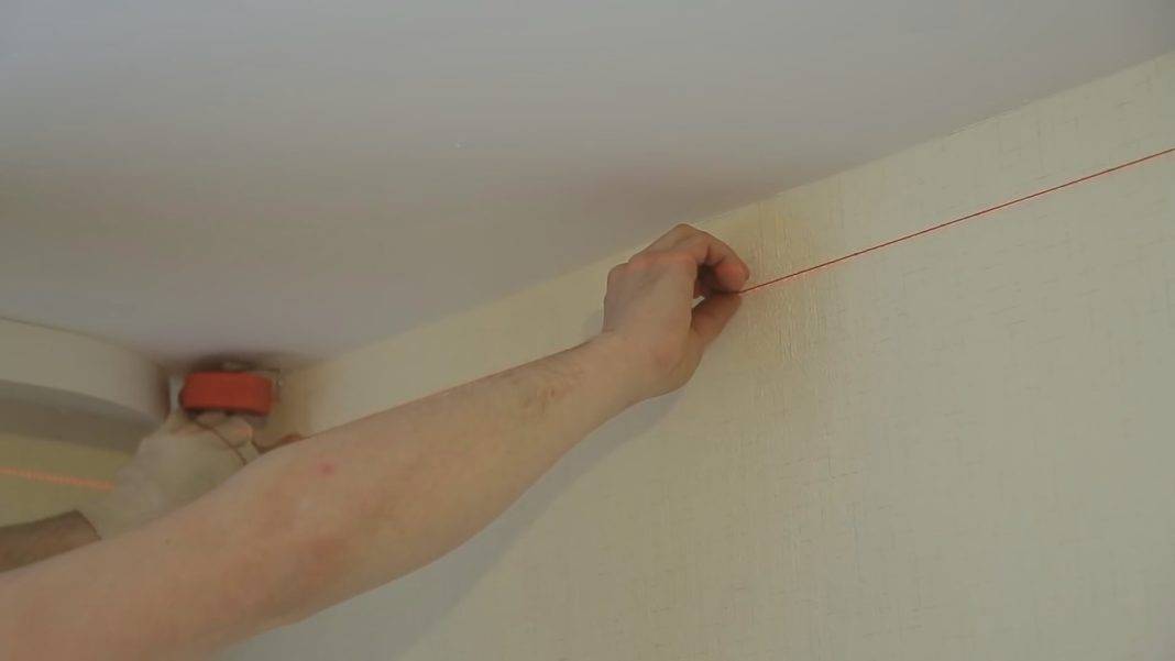 - По выставленным отметкам фиксируют начало и конец разметочного шнура, он должен плотно прилегать к поверхности.