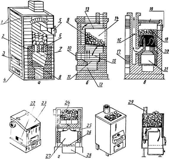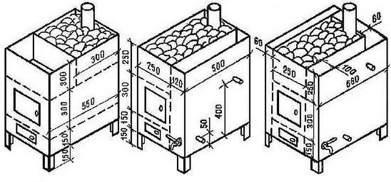 - каменки — места, где будут уложены камни-аккумуляторы тепла;