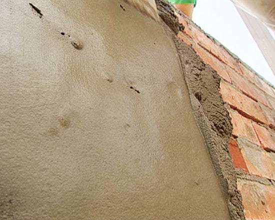 Слой наносят толщиной около 15 мм. Перед работой печку протапливают, чтобы ускорить время высыхания. Поверхность смачивают водой, наносят всплошную первый пласт. Дожидаются схватывания, накладывают второй слой. Площадь затирают штукатурной теркой, чтобы выглядела ровной. После высыхания белят известью.