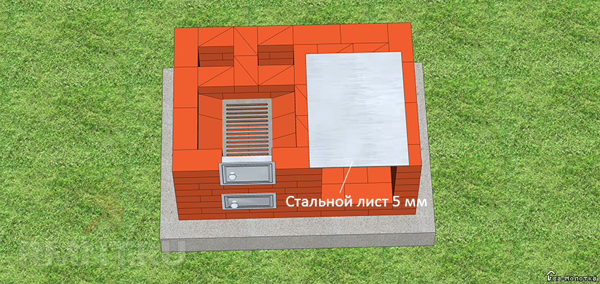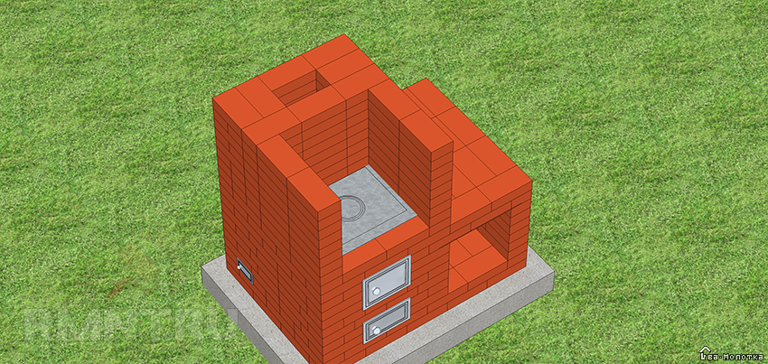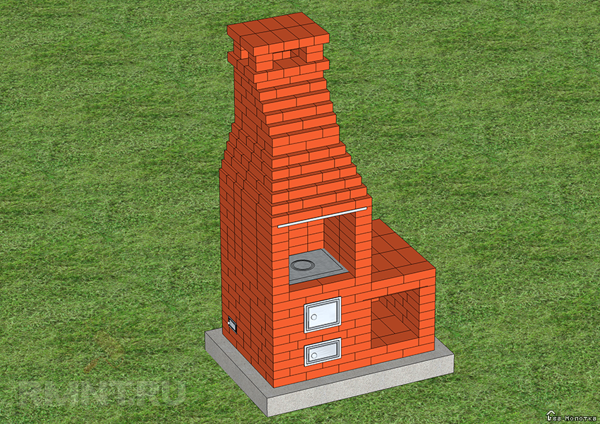 Вот как выглядит одна из вариаций кирпичного мангала без столика (если вам он ненужен, просто игнорируйте эту часть)