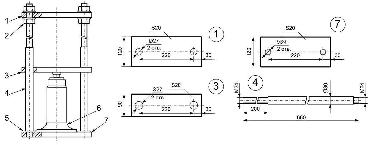 Чертежи производственно-технологического гидравлического пресса из домкрата с усилием в 12 тс