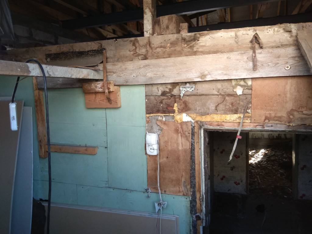 Ранее в этой части, был старый дом, во круг которого залили фундамент, и сначала, построив стены крышу – заселились в новую часть дома, а в части, где был старый дом, он так и остался зимовать. Представляете? Дом в доме ))