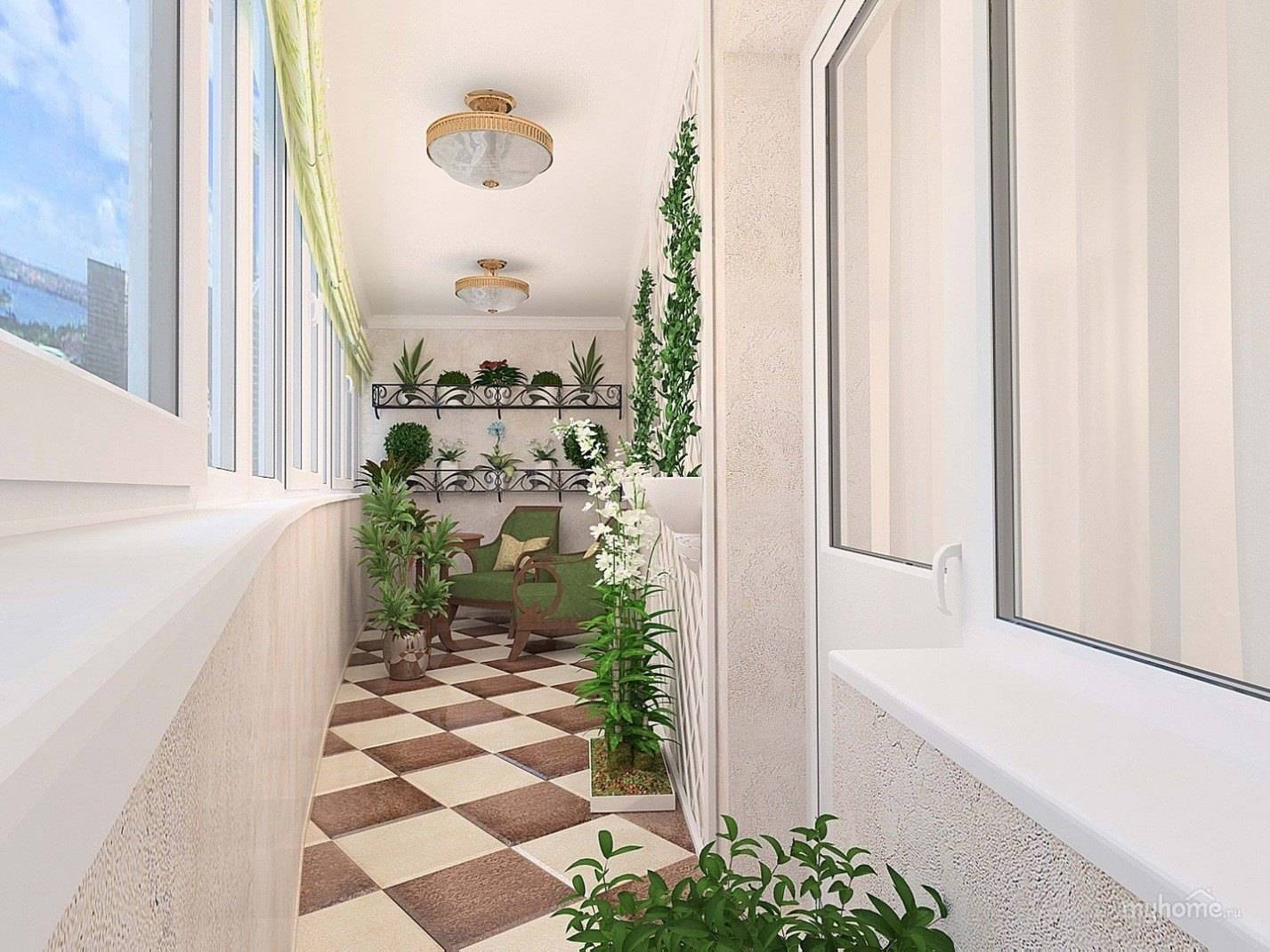 На балконном полу очень красиво будет смотреть керамическая плитка. В продаже есть множество цветовых и текстурных решений, поэтому выбрать облицовку под определенный интерьер не вызовет трудностей.