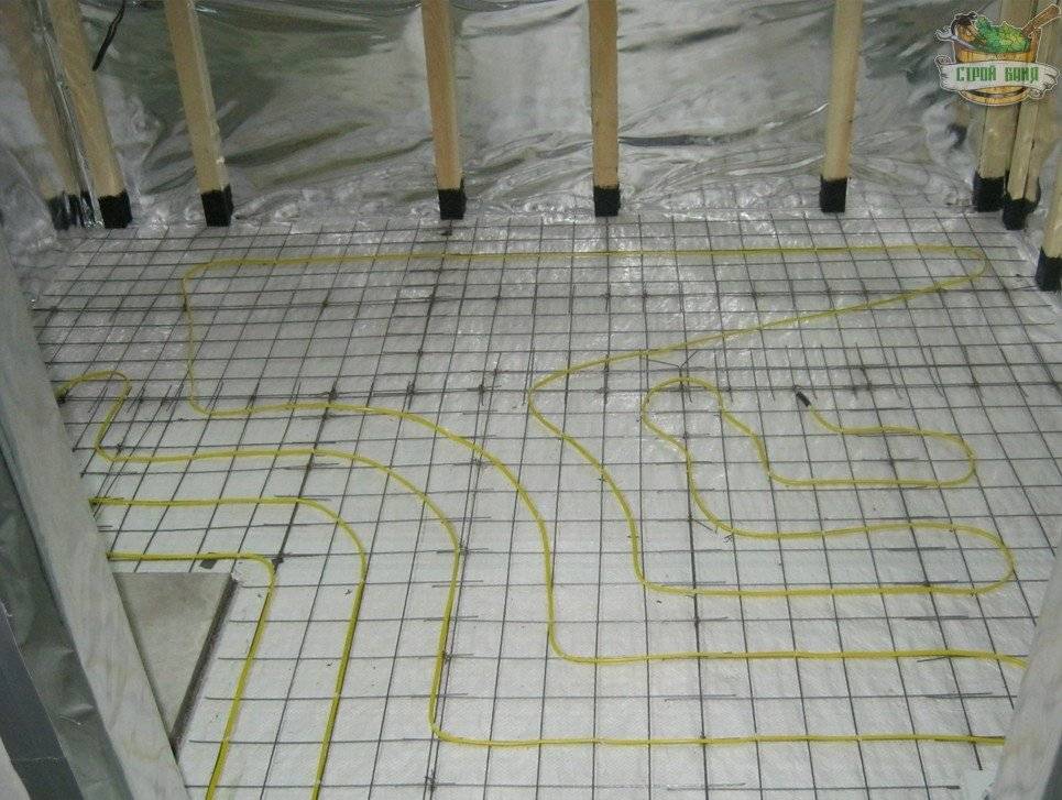 Для облегчения монтажа кабеля на поверхность пароизоляции уложена кладочная сетка 50х50 мм. Части сетки связаны проволокой.