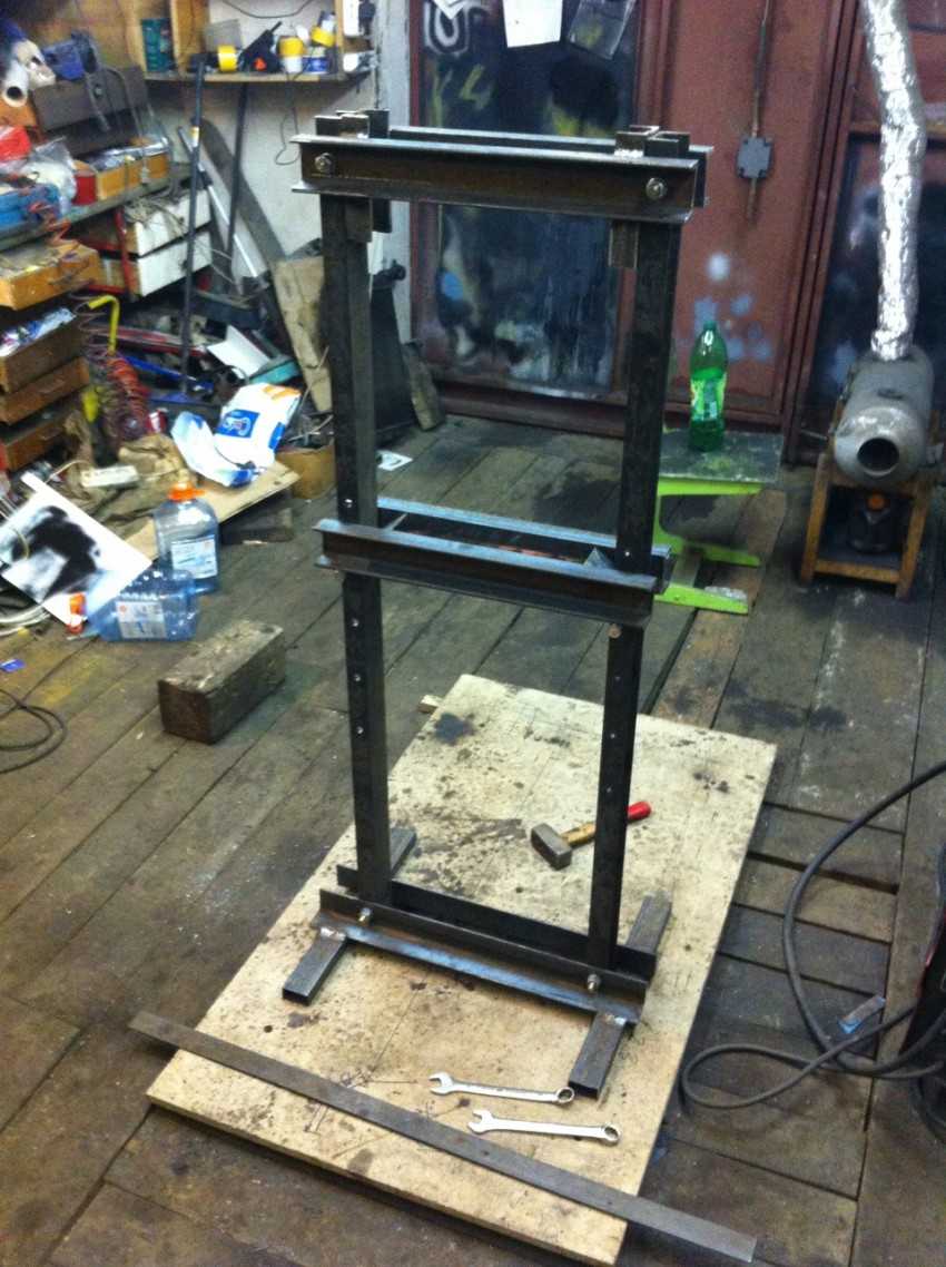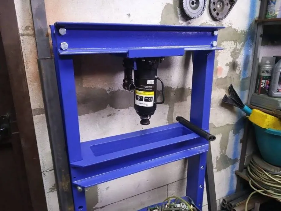 - Самодельный пресс для гаража готов. Остается выполнить шлифовку и покраску для придания товарного вида.