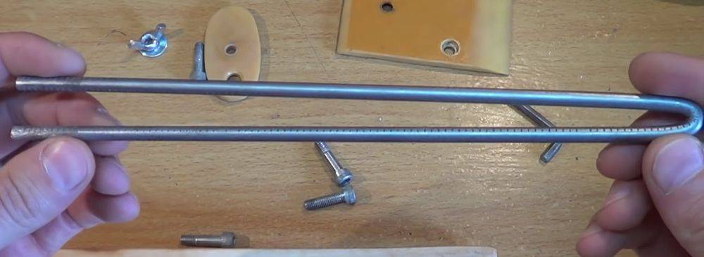 Изготавливаем поводок из прутка диаметром 8мм и длиной 570мм. С одной