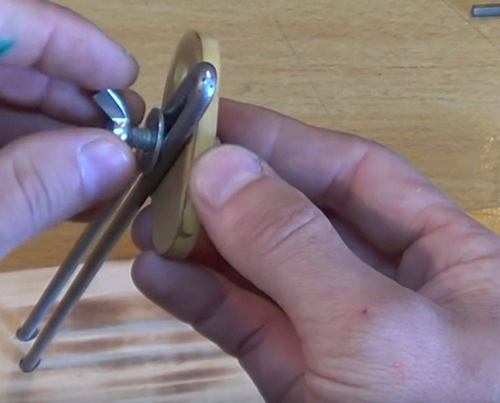 Самая сложная часть сборки этого приспособления заключается в подготовке регулирующего устройства, которое будет задавать угол заточки ножа. Для этого понадобится: