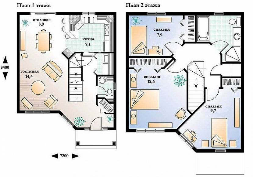 Пример планировки двухэтажного домаИсточник centermira.ru