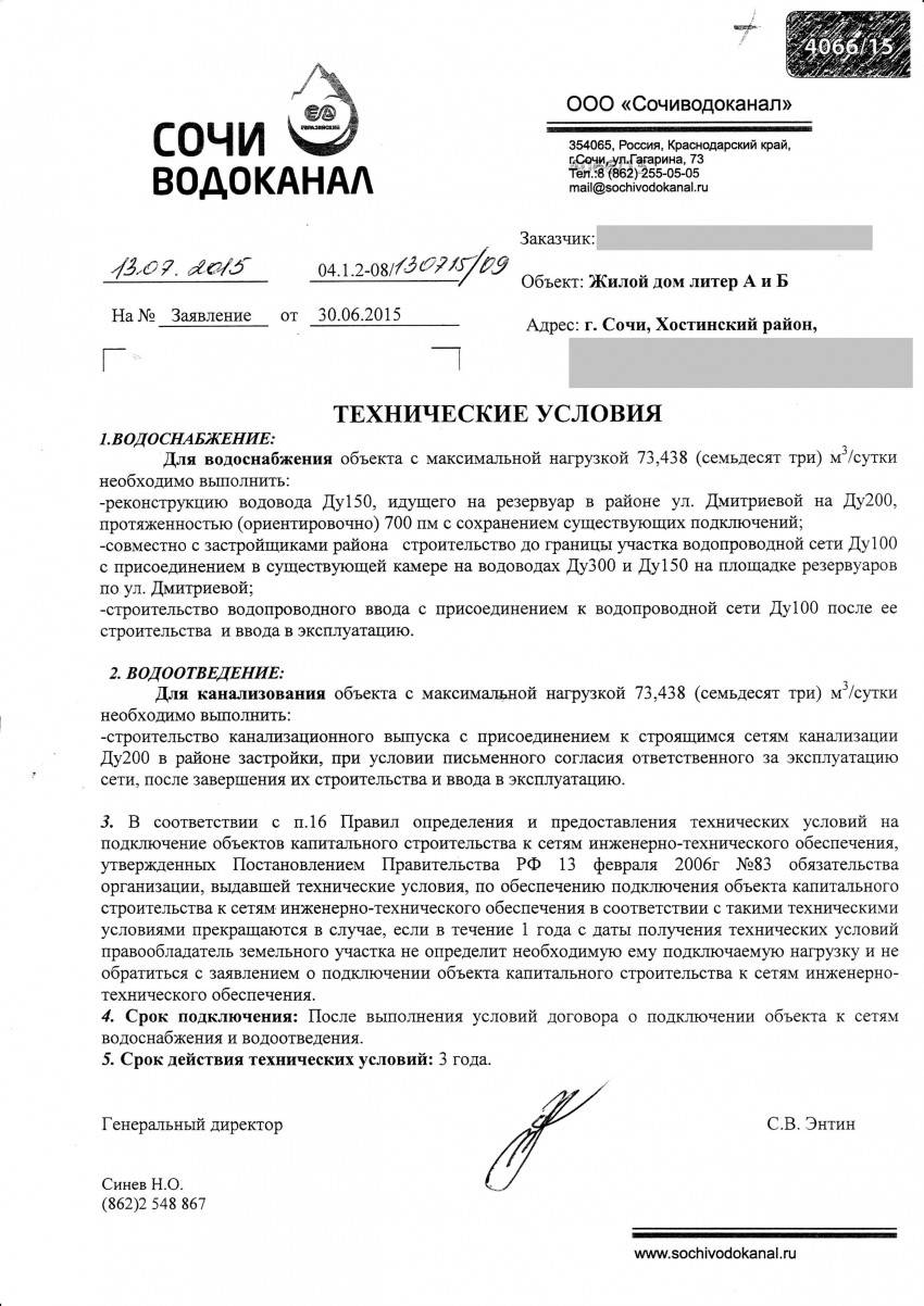 Получение технических условий является ключевым моментом, определяющим возможность подключения в принципе.