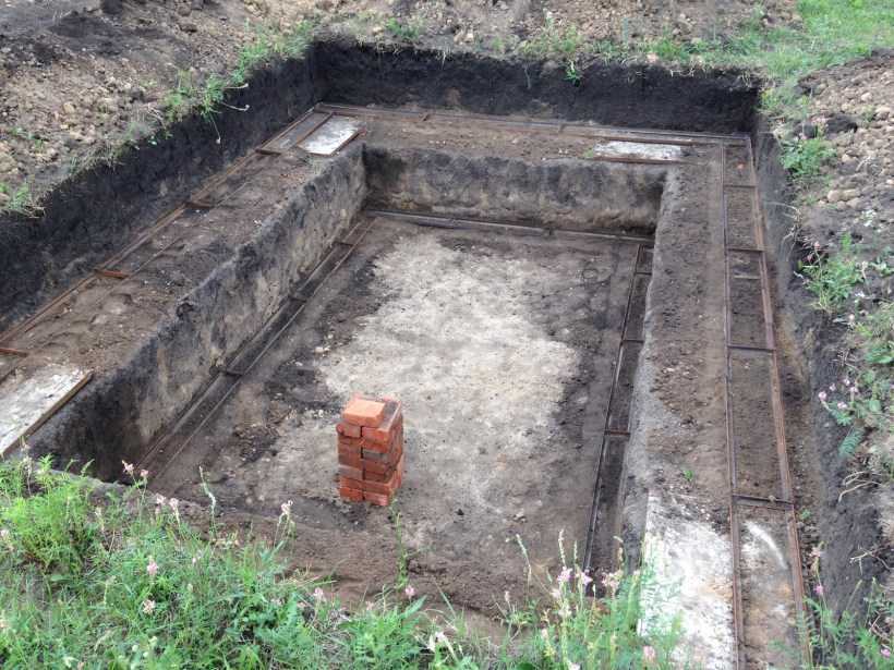 - Откапывается котлован со всеми необходимыми уступами, углублениями.