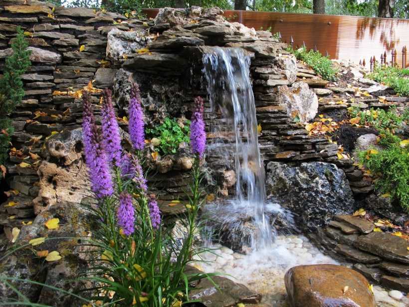 Вид и звуки ниспадающих потоков моментально успокаивают, снимают тяжесть забот, расслабляют. Ради этого стоит постараться. Вы можете соорудить пруд с водопадом на ровной местности, либо встроить водоём в состав цветущей композиции альпийской горки. В любом случае это будет эксклюзивным эстетическим решением.