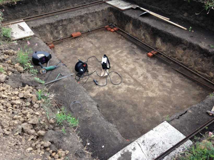 - Дно котлована тщательно выравнивается. Его горизонтальность проверяется с помощью специального измерительного инструмента.