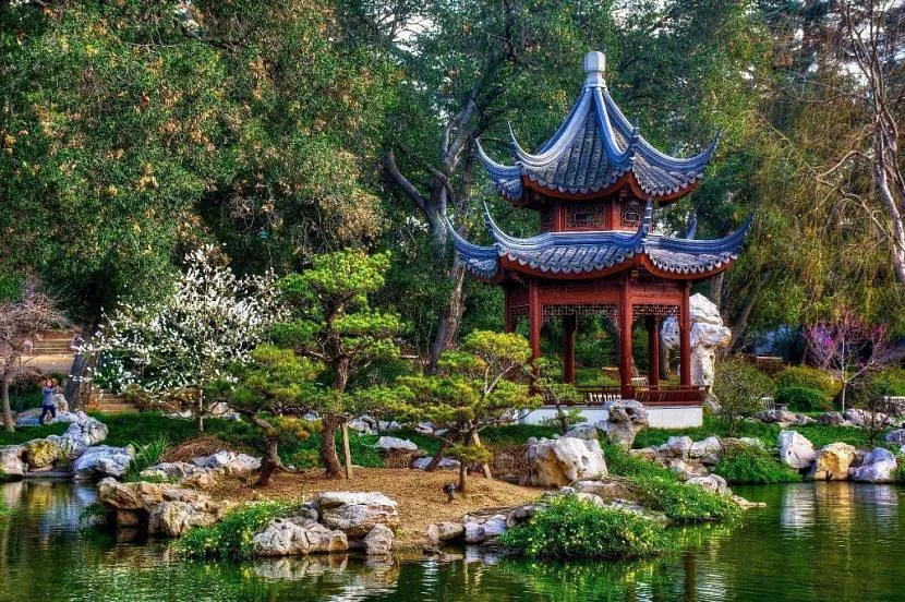 Китайский – уместен с китайским садом. Через водоем перекидывают мостик, рядом желательна беседка для чаепития. Обязательное изобилие рыбы, лотосы, пышная растительность и много валунов и камней.