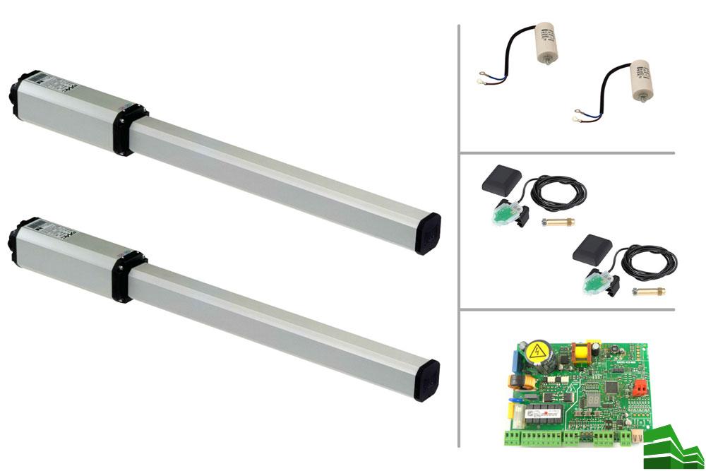 Данная система состоит из двух линейных электроприводов и блока управления, а также антенны, сигнальной лампы и электромагнитного замка. Стоит отметить, что автоматические распашные ворота подключают к обычной бытовой электрической сети переменного тока с напряжением в 220 Вт.