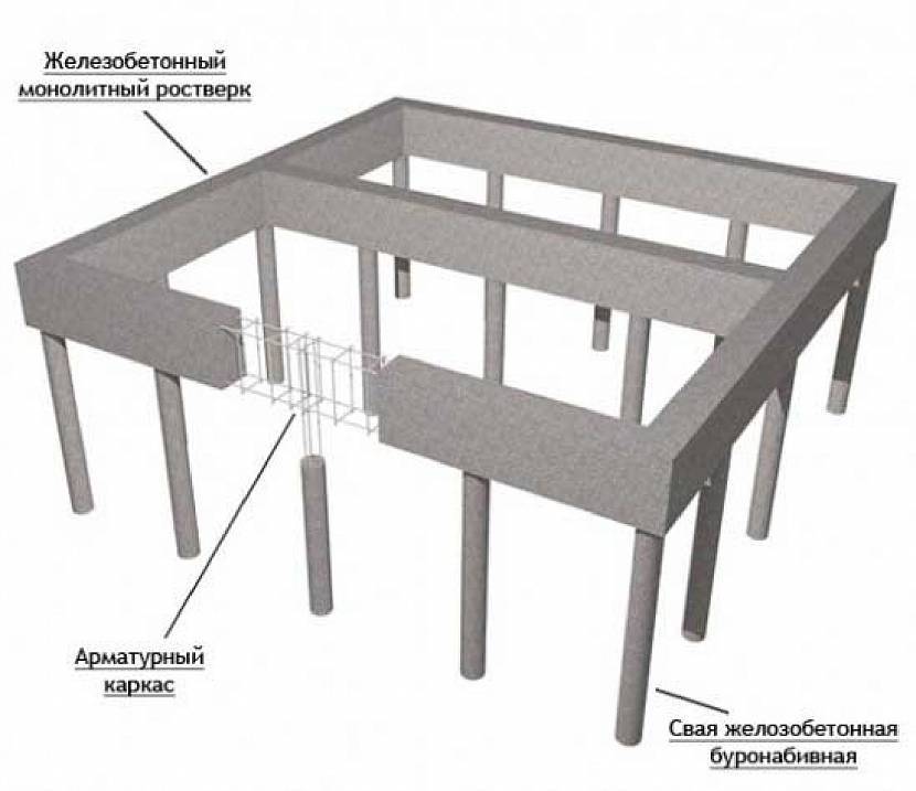 Свайный фундамент с ростверкомИсточник remoskop.ru