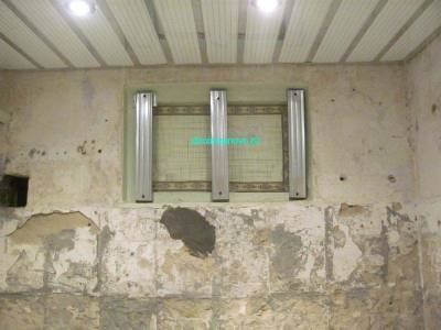 Закончив с утеплением, переходим к наведению глянца, хотя этот глянец и несёт функциональное значение как конденсат. Хорошим вариантом является такой материал, как пластиковая вагонка или ламинат. Не беспокойтесь о надёжности материала. Устойчивый к влаге клей, даже если и отклеится в части потолка, за собой обрушения не повлечёт – поскольку доски соединены между собой, образуя единую цельную конструкцию. По окончании работ с потолком вы приступите к облицовке стен. Уложенные плитки послужат для ламината опорой.