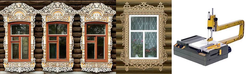Старинные резные наличники, современный фанерный наличник и лобзиковый станок для выпиливания из фанеры