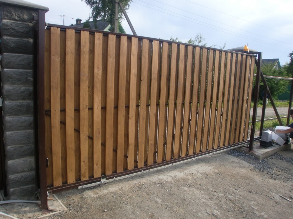 Материал, из которого будет монтироваться обшивка выездных ворот откатного типа, выбирают исходя из личных предпочтений и финансовых возможностей. Наиболее часто приобретаемыми для этой цели материалами являются: