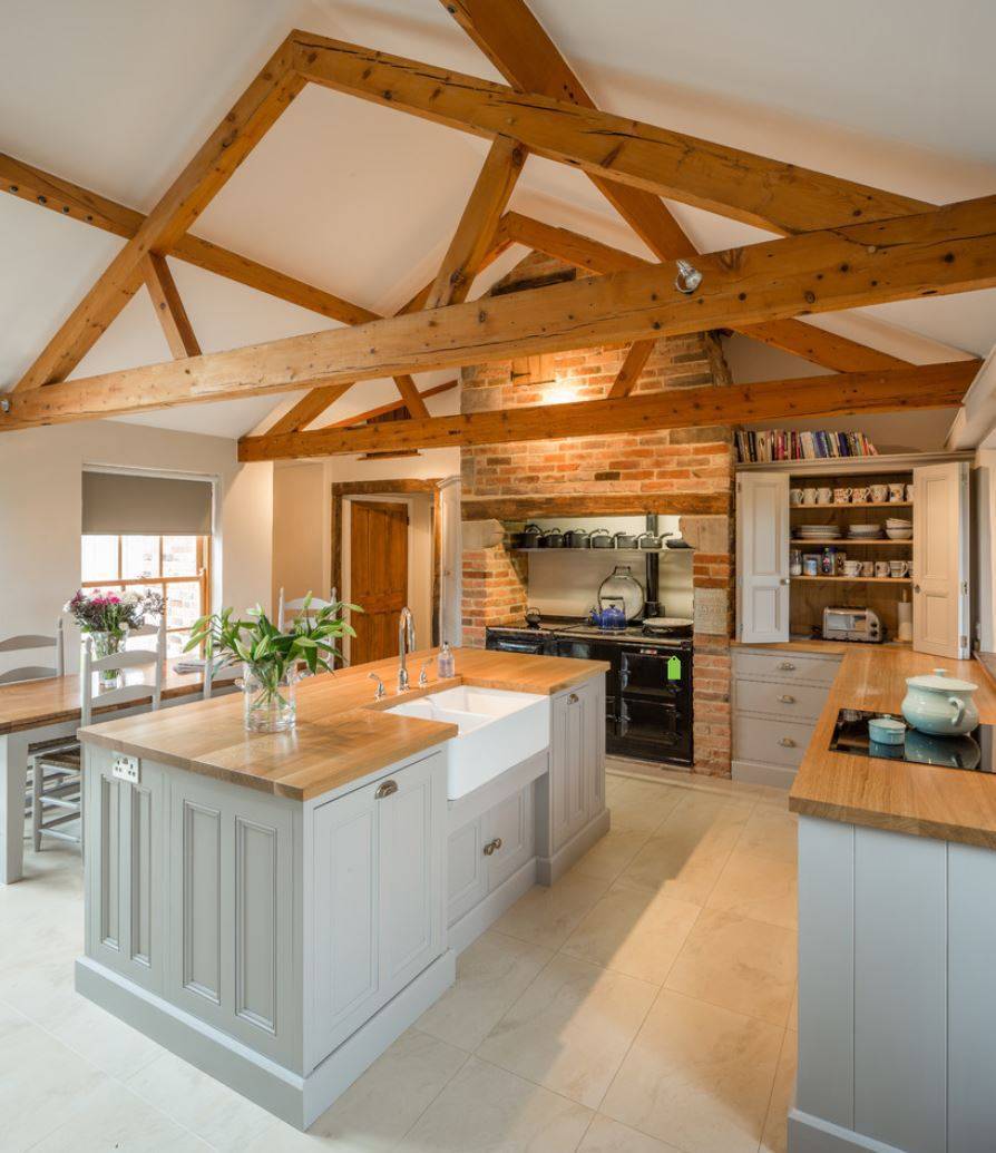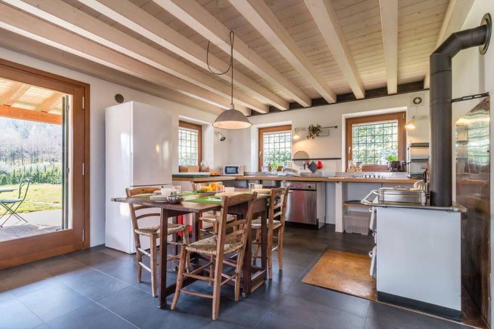 деревянная балка – лучший выбор для потолочного конструкции кухни в деревенском стиле