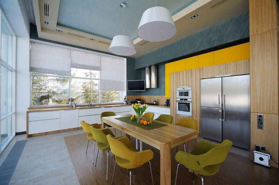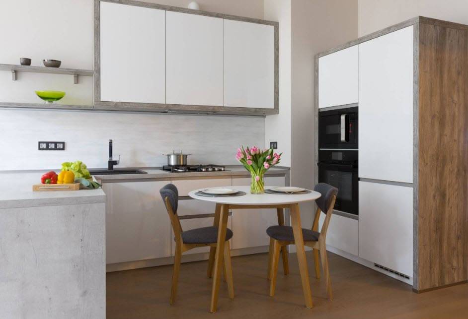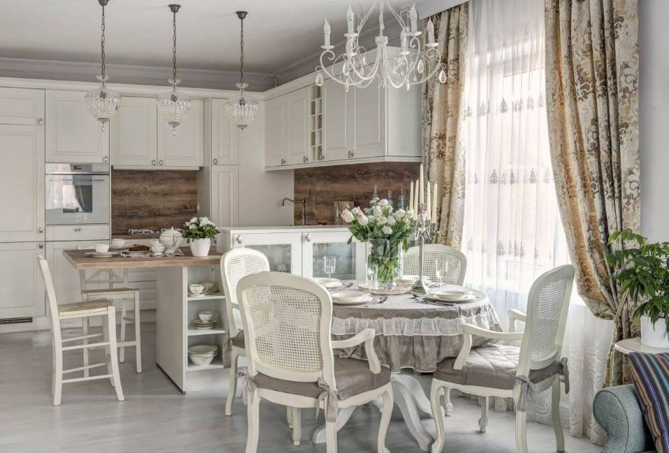 - неизбежным кухонным атрибутом – обеденным столом, лучше круглым или овальным;