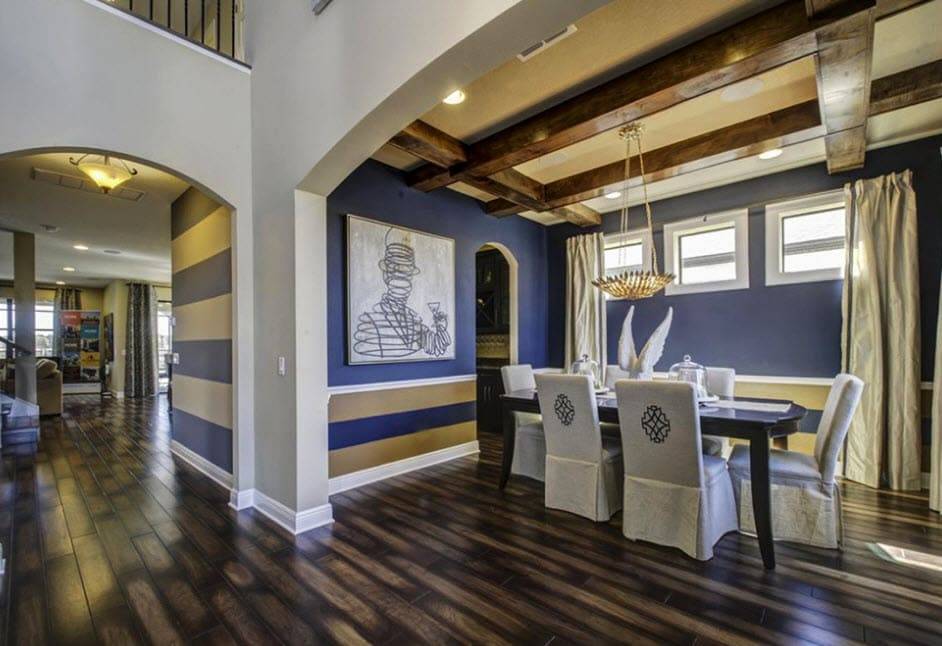 Если мебель подобрана в древесных оттенках, стены можно сделать в контрастных к ним цветах.