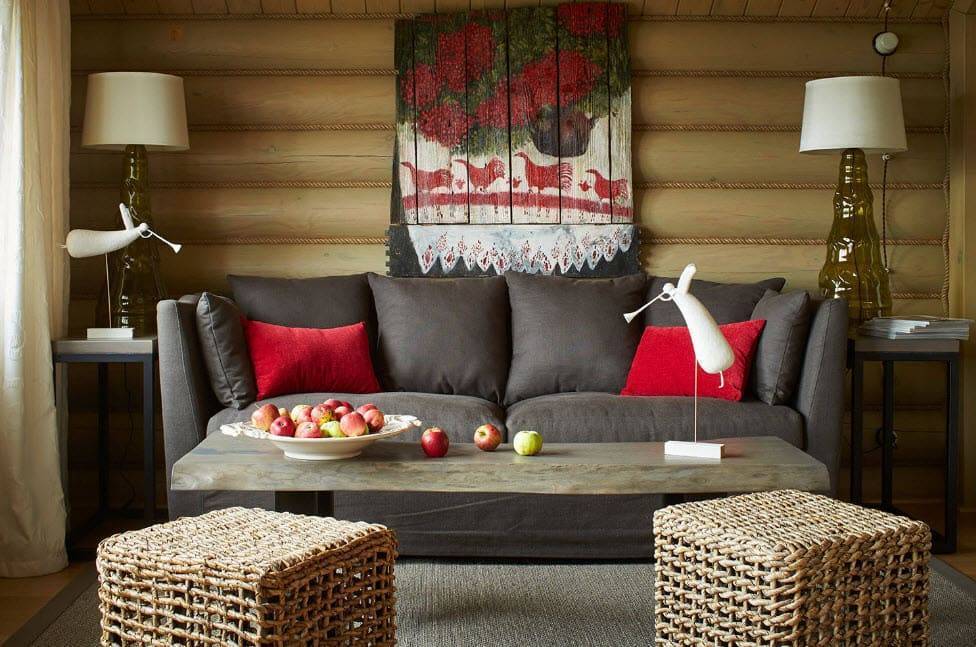 Если вы оформляете интерьер в стиле а-ля рус, осторожно используйте расписную мебель, например, хохломскую. Дело в том, что исконно русский интерьер лаконичен: мебель была простой и удобной