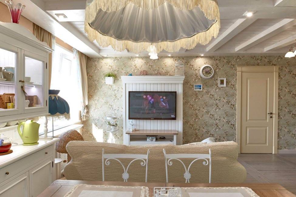 Для прованского стиля характерны мягкие пастельные тона. Это белый, песочный, кремовый, голубой, коричневый, желтый цвета.