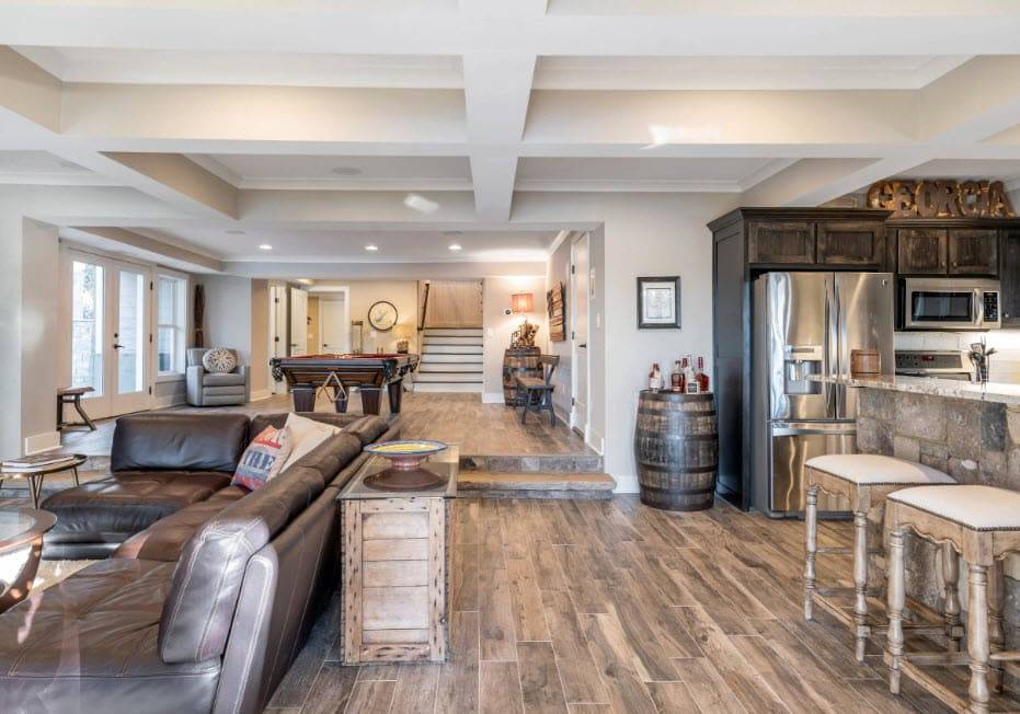 Если пол преображаемой кухни выполнен из дерева, он идеально впишется в любой деревенский интерьер. Данный материал достаточно отшлифовать и обработать пропиткой, отказавшись от использования лака и других покрытий.