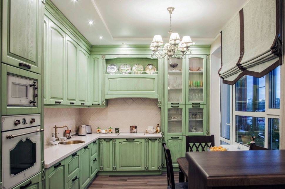 Если помещение большое, массивная мебель будет смотреться прекрасно. Для маленькой кухни желательно меньше излишеств в ее выборе, чтобы не уменьшать и без того ограниченное пространство.
