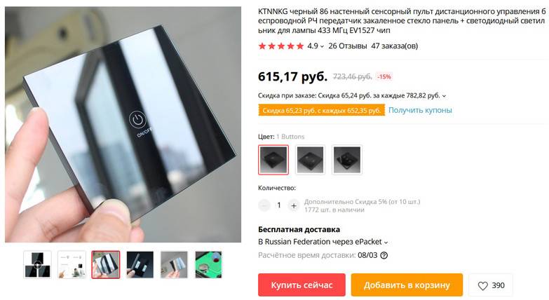 Первый стандарт RF. Это не самый распространенный стандарт и при этом один из самых дешёвых. Например, вот китайские сенсорные выключатели RF стандарта.