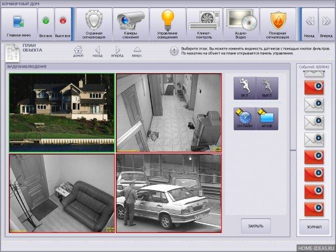 Очень часто создание такой системы начинается с желания владельца квартиры или дома контролировать происходящее вокруг. В нужных местах устанавливаются видеокамеры, сигнал от которых передается прямо на компьютер. Таким образом вся информация может храниться на жестком диске и перезаписываться, например, через десять дней. Если у вас есть такое желание, то можно подключить удаленный доступ. Так, находясь на работе, вы точно будете знать, что происходит рядом с вашим домом.