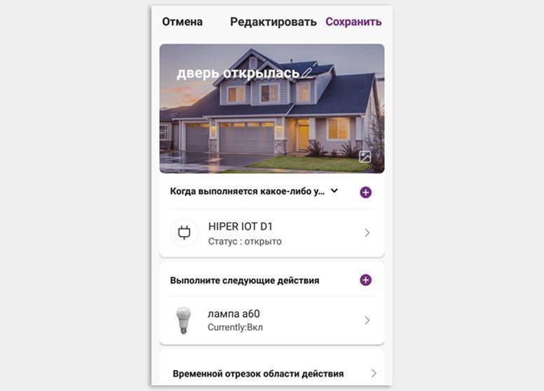 Теперь настраиваем сценарий через приложение HIPER IoT, и получаем результат: