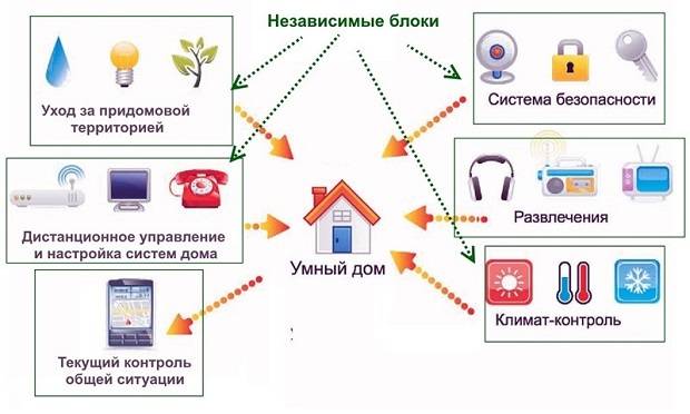 Всё это может быть подконтрольно единой системе, которую и называют «умным домом». Это управляющий компьютерный блок, связанный с домашней техникой, а также с внутренней и наружной системой датчиков температуры. Сообразно информации датчиков и заданного режима, такая система способна понижать или повышать температуру в помещении. Кроме того, она может регулировать количество горячей воды готовой к использованию в бойлере.