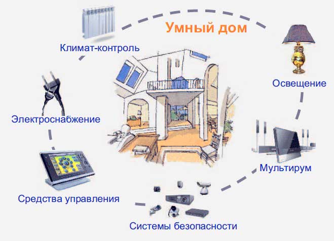 Дороговизна и недоступность систем управления инфраструктурой дома долгое время делало их предметом роскоши для миллионеров, которые уже не знают на что им потратить свои деньги. Но комфортом желают пользоваться и люди с гораздо меньшим уровнем достатка. Для них производителями электроники были разработаны готовые комплекты оборудования, не требующие сложного квалифицированного монтажа и настройки. Чаще всего такой комплект «умного дома» выглядит следующим образом: