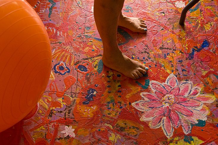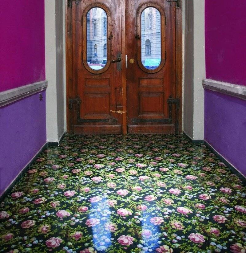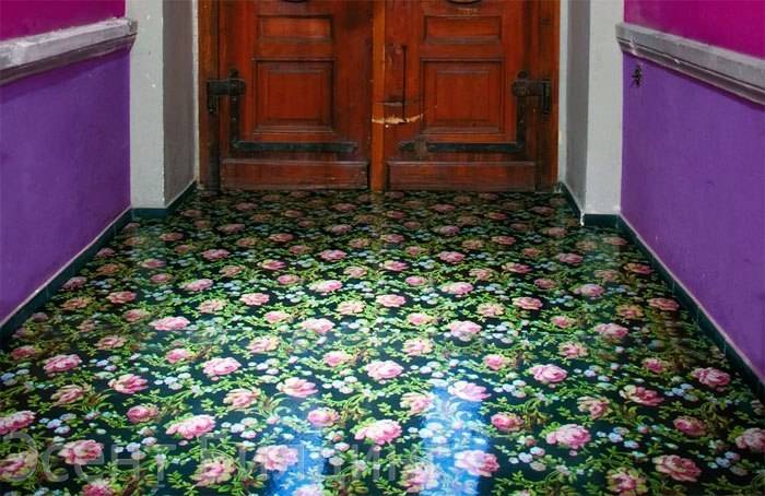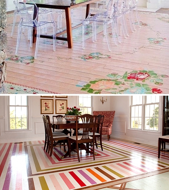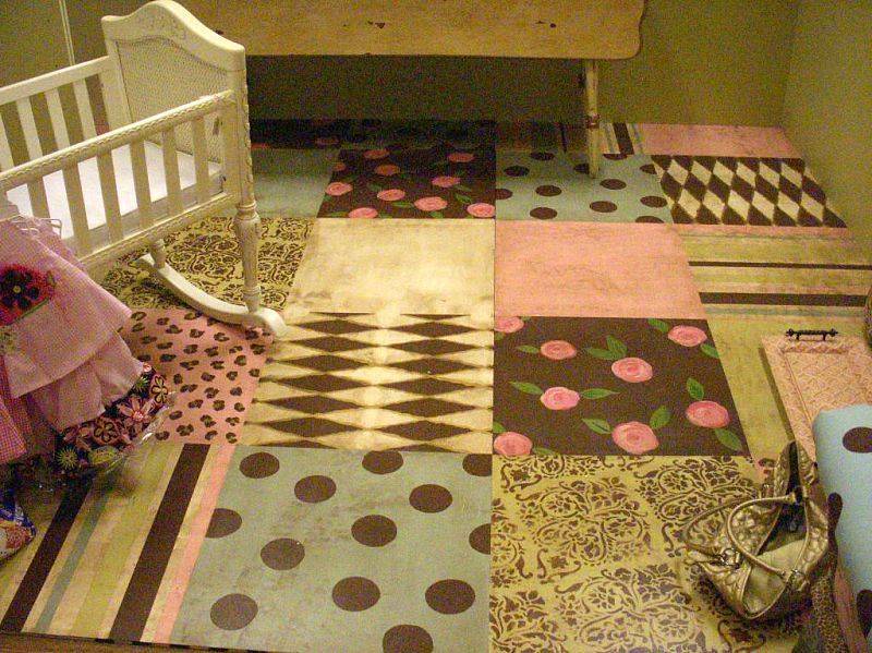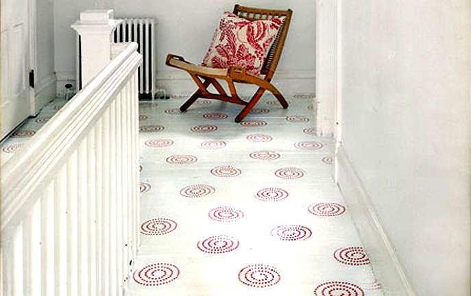 Простой, но не менее интересный способ отделки. Помимо простой однотонной покраски пол могут украшать разнообразные узоры. Для лучшего сцепления краски с поверхностью, пол нужно подготовить и очистить.