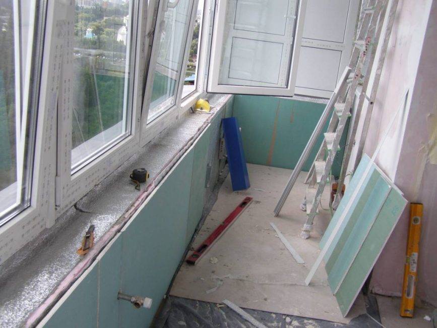 Но максимум, что можно из него сделать для балконного шкафа – это дверцы: обшить дверную раму листами гипсокартона с помощью саморезов, обклеить стыки армирующей лентой, зашпаклевать и зашлифовать.