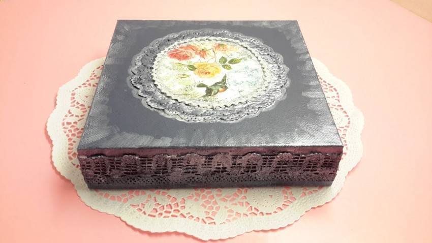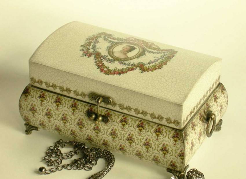 Изысканная шкатулка, декорированная с помощью техники декупаж и кракелюр