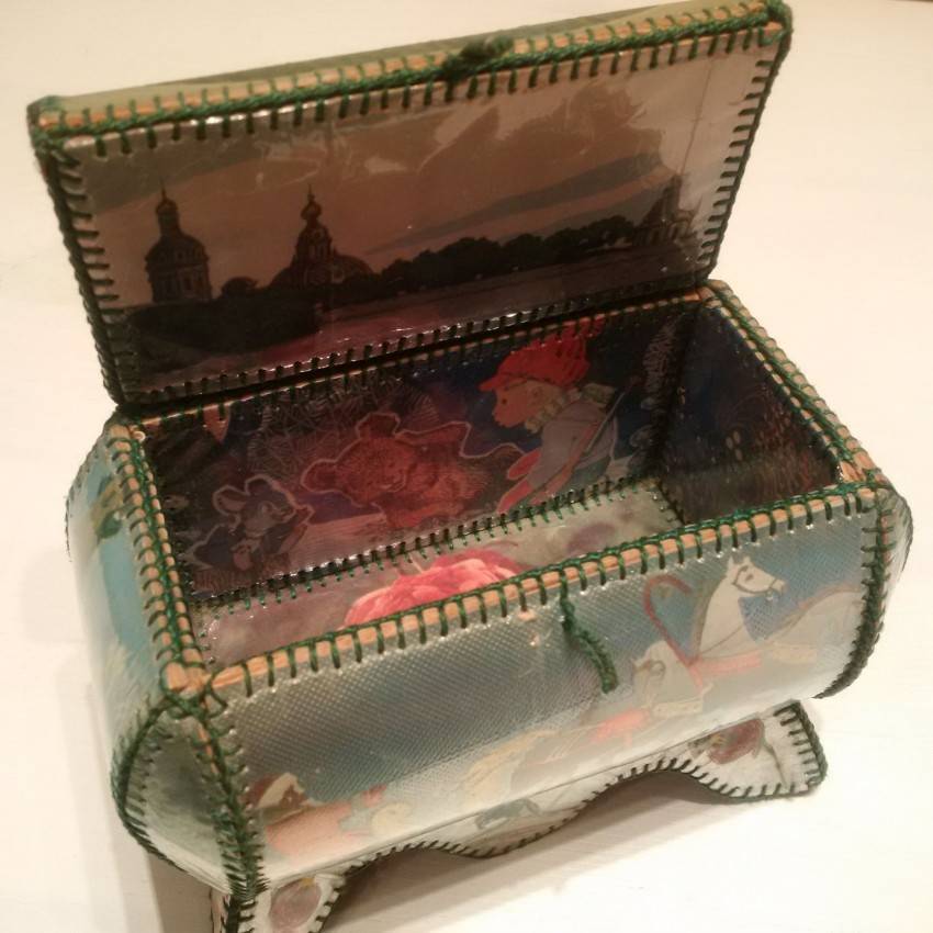 После того, как шкатулка просохнет, ее покрывают лаком.