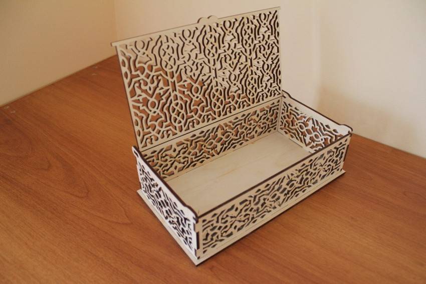- Соединить основную часть шкатулки с боковыми стенками, закрепить их клеем или прошить.