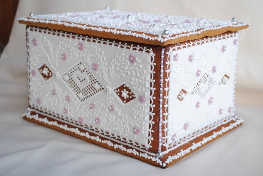 Отличительная особенность шкатулок из багета — это верхняя часть крышки. Ее можно украсить в любом стиле: добавить вышивку, кружево, а также заменить картон пластиком и выполнить декоративную лепку.